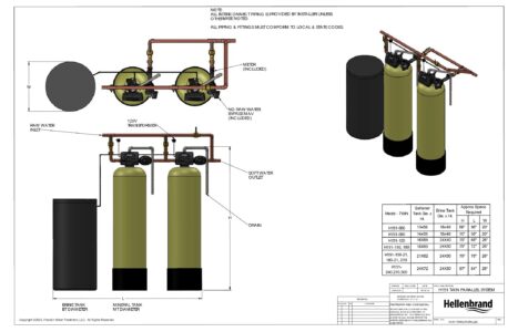 Hellenbrands H151 Twin Alt Parallel Commercial Water Softener Schematic Drawing